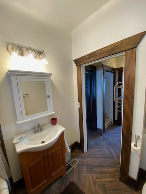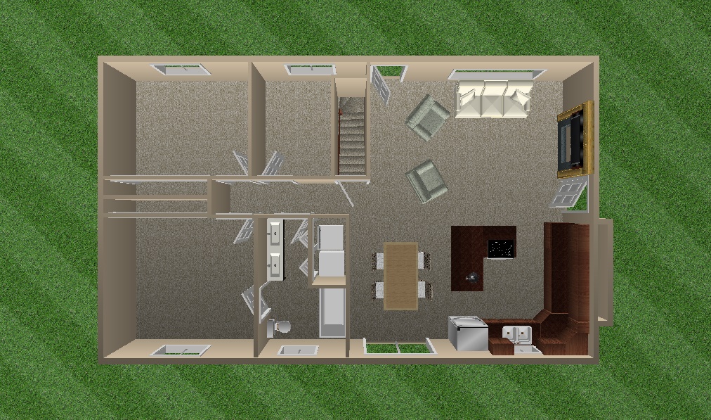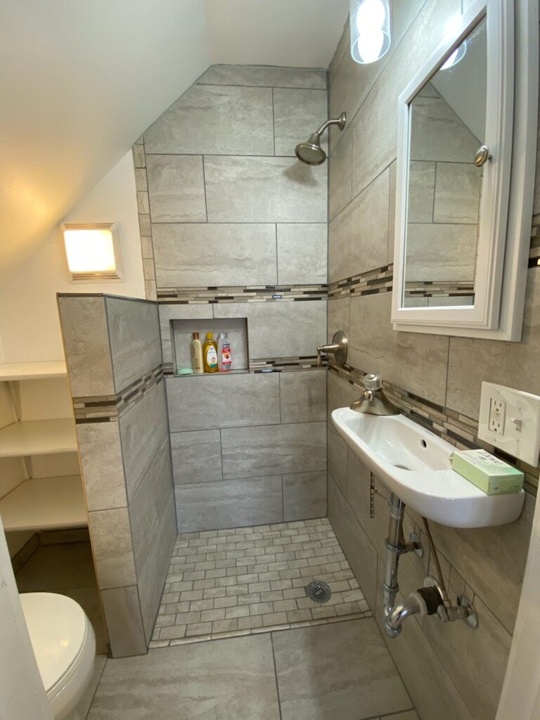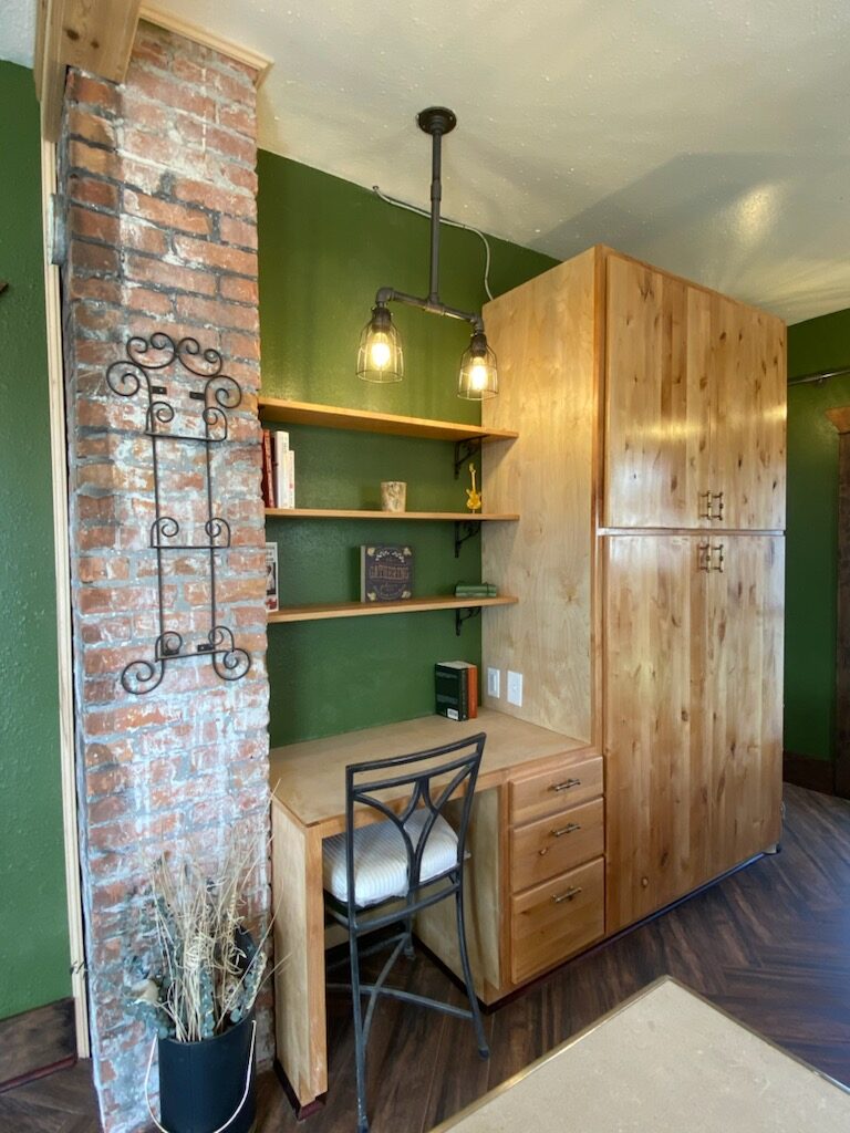 From a tiny 11×19 space at the back of a garage with the ceiling literally caving in and falling apart, the Home Design Coach worked to create this sheik one-room studio apartment. There had been an apartment of sorts here before, but the bathroom consisted of barely more than a closet where one could sit on the toilet, wash one’s hands, and take a shower all at the same time! The back of the door was part of the shower “stall.” All of that changed dramatically, creating a rental space the owners never thought possible.